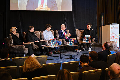Bei der Gesundheitspolitische Diskussionsrunde diskutierten Simone Borchardt (CDU), Christoph Pantazis (SPD), Ates Gürpinar (Die Linke), Hans-Peter Hubmann und Alexander Müller (Moderation). (v. l.)