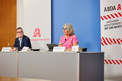 ABDA-Präsidentin Gabriele Regina Overwiening und ABDA-Kommunikationschef Benjamin Rohrer