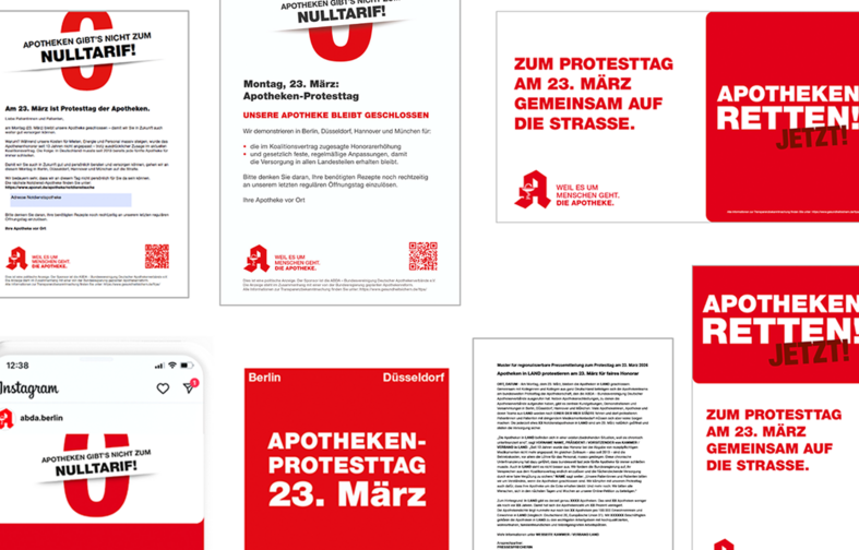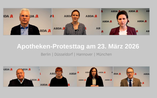 Vor dem bundesweiten Protesttag der Apothekerschaft am 23. März ruft der ABDA-Vorstand alle Apothekenteams in Deutschland zur Teilnahme auf. Hier klicken.