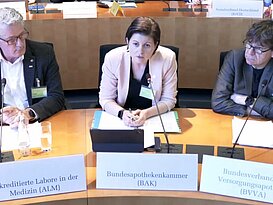Auf die Frage von CSU-Gesundheitspolitikerin Emmi Zeulner sagte Scharpf, dass die Erleichterung bei der Einrichtung von Zweigapotheken ein Irrweg sei. Die Versorgung könne dadurch nicht verbessert werden. Zudem seien das Prinzip der persönlichen Verantwortung des Apothekers bzw. der Apothekerin sowie die flächendeckende Versorgung gefährdet. Die BAK-Vizepräsidentin sagte auch, dass die Stärkung des PTA-Berufsbilds ein wichtiges Anliegen der Apothekerschaft sei. PTA würden die Apotheker ergänzen, aber dürften sie in der Apotheke nicht ersetzen, so Scharpf.