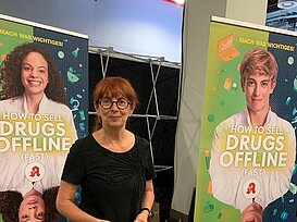 Die ABDA-Nachwuchskampagne "How to sell drugs offline (fast)" kommt bei den Jugendlichen gut an. Die Motive sind beim Ausbildungstag Pankow & Lichtenberg (27. Mai) in Berlin aufgestellt worden, an dem Lichtenberger Apotheken mit einem Stand vertreten waren. Zur Messe waren im Vorfeld mehr als 2.000 Besucherinnen und Besucher aus den Pankower und Lichtenberger Sekundarschulen der 9. und 10. Klassen erwartet worden.