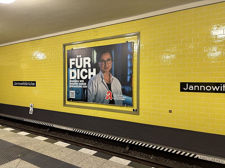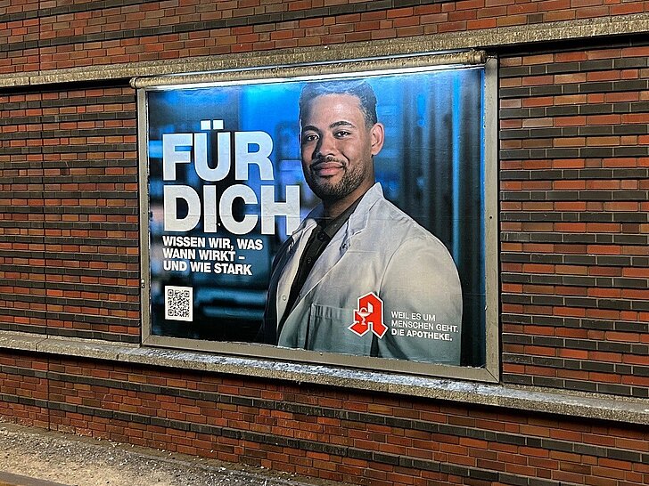 An der Kampagnenlinie "Für Dich" kommt derzeit keiner vorbei. Seit dem Auftakt in Düsseldorf zum Deutschen Apothekertag 2025 (16. bis 18. September 2025) wird die crossmediale Kampagne wellenartig auf mehr als 1.000 aufmerksamkeitsstarken Flächen im öffentlichen Raum bundesweit ausgespielt, um über 72 Millionen Kontakte zu generieren.