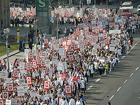 Die ABDA-Mitgliederversammlung hatte den 23. März zum bundesweiten Protesttag der Apothekerschaft erklärt. Die Apothekerverbände hatten daraufhin alle Inhaberinnen und Inhaber zu Apothekenschließungen aufgerufen. Zudem wurden in den Städten Berlin, Düsseldorf, Hannover und München Kundgebungen und Demonstrationen organisiert. Preis dazu: „Ich danke allen Kolleginnen und Kollegen für ihr riesiges Engagement! In München hatten wir 3.500 Besucherinnen und Besucher, in Hannover 5.000, in Berlin 6.000 und in Düsseldorf sogar 10.000. Das zeigt, wie sehr die Apotheken durch den Honorarstillstand belastet sind.“ Auf den Protesttag hatten sich die Teams mit ihren mehr als 160.000 Beschäftigten in den vergangenen Wochen mit ABDA-Kampagnenmaterialien vorbereitet. Preis dazu: „Von unserer Kampagnenseite wurden mehr als 150.000 Protestmaterialien heruntergeladen. In den vier Großstädten kamen insgesamt 2.000 Demoschilder, 5.500 Klatschpappen, 7.000 Protestflyer und 2.500 Trillerpfeifen zum Einsatz. Auch das zeigt, wie geschlossen die gesamte Branche hinter unseren Forderungen steht.“ ABDA-Präsident Preis erinnert zudem an die Online-Petition: „Unsere Petition „Apothekensterben stoppen - Koalitionsvertrag jetzt umsetzen!“ auf www.openpetition.de hat inzwischen fast 100.000 Unterschriften erreicht. Das zeigt uns mehr als deutlich: Auch die Bevölkerung steht hinter uns. Die Menschen brauchen die wohnortnahe Arzneimittel- und Gesundheitsversorgung durch die Apotheken.“