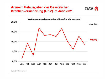 Die Ausgaben der Gesetzlichen Krankenversicherung (GKV) für Arzneimittel sind im Jahr 2021 um 10,1 Prozent auf 45,0 Mrd. Euro (inkl. MwSt.) gestiegen. Das ergeben Berechnungen des Deutschen Apothekerverbandes (DAV) auf Basis der Abrechnungsergebnisse von Apothekenrechenzentren.