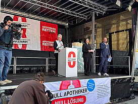 - In Düsseldorf organisierte der Apothekerverband Nordrhein (AVNR) die zentrale Kundgebung. Sie fand auf dem Burgplatz statt.