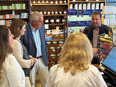 Der saarländische Gesundheitsminister, Dr. Magnus Jung, hat vor kurzem ein "Apotheken-Praktikum" absolviert. In Anwesenheit des Präsidenten der Apothekerkammer des Saarlandes, Manfred Saar, und der Vorsitzenden des Saarländischen Apothekervereins, Susanne Koch, wurden apothekenspezifische Themen erörtert. Dabei erstreckte sich die Bandbreite der Themen von rein pharmazeutischen Fragestellungen (pharmazeutische Dienstleistungen, Herstellung von Fiebersäften/Antibiotikasäften) über Schutzimpfungen in Apotheken bis hin zur desolaten wirtschaftlichen Situation vieler Apotheken im Saarland.
