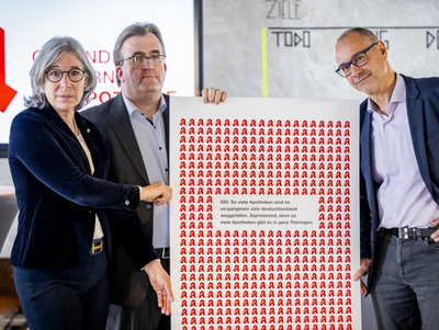 Darüber hinaus hat ABDA-Präsidentin Gabriele Regina Overwiening in der Pressekonferenz am 15. April 2024 in Erfurt den Claim "Gesundheit sichern. Die Apotheke." der neuen ABDA-Dachkampagne offiziell vorgestellt. Die neue Kampagne wird unter anderem mit der Aktion "Wir sehen rot." in den kommenden Wochen nach und nach ausgerollt. Wir beginnen heute mit einer neuen URL für die Kampagnenseite, die nun www.gesundheitsichern.de lautet und gestalterisch sowie inhaltlich angepasst wurde. Die dort sichtbaren und auf apothekenkampagne.de verfügbaren Kampagnenmotive werden sukzessive mit dem neuen Dachclaim versehen.