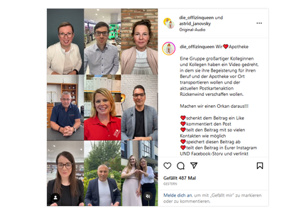Viral durch die Decke geht derzeit ein Video einer Gruppe von Apothekerinnen und Apotheker, die sich unter dem Motto "Wir lieben Apotheke" zusammengetan haben. In dem Video bringen sie ihre Begeisterung für ihren Beruf und die Apotheke vor Ort zum Ausdruck und wollen der Postkartenaktion Rückenwind verschaffen. "Machen wir einen Orkan daraus!", heißt es und weiter: "Wir brauchen Euch alle!" Mit dabei sind unter anderem Tatjana Buck und Björn Schittenhelm aus dem Vorstand der Landesapothekerkammer Baden-Württemberg sowie der Digital-Experter Steffen Kuhnert.