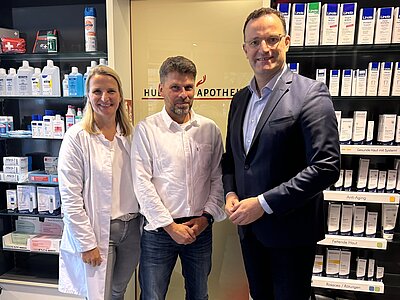 Der ehemalige Bundesgesundheitsminister Jens Spahn hat sich in seinem Wahlkreis über die Sorgen der Apotheken informiert und über die Reformpläne seines Amtsnachfolgers gesprochen. Der CDU-Bundestagsabgeordnete (Wahlkreis Steinfurt I / Borken I) schaute in der Hubertus-Apotheke in Legden vorbei, wie der Apothekerverband Westfalen-Lippe (AVWL) berichtet.