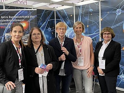Auf einem Rundgang über die Expopharm haben mehrere Patientenbeauftragte von Landesapothekerverbänden die Stände von Selbsthilfe- und Patientenorganisationen besucht. Elke Balkau (Westfalen-Lippe), Ina Bartels (Niedersachsen), Mira Sellheim (Hessen) und Katharina Hofmann (Berlin) informierten sich bei der Deutschen FibromyalgieVereinigung (DFV) e.V., dem Bundesverband der Clusterkopfschmerz-Selbsthilfe-Gruppen (CSG) e.V. und bei Apotheker ohne Grenzen über aktuelle Themen und Anliegen der Patienten. Begleitet wurden sie von Christina Verdenhalven (ABDA).