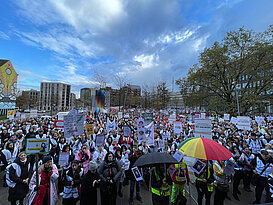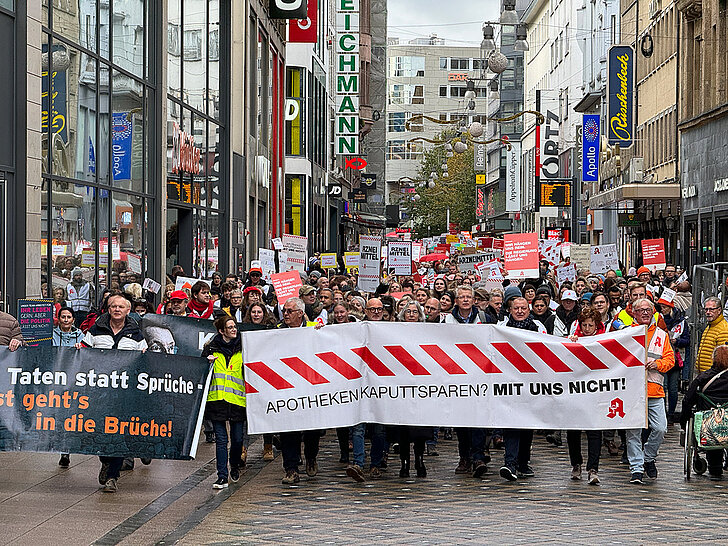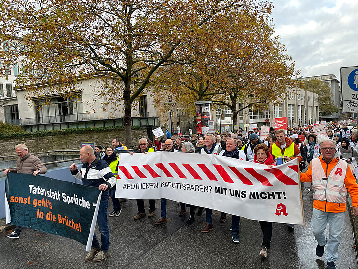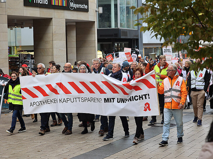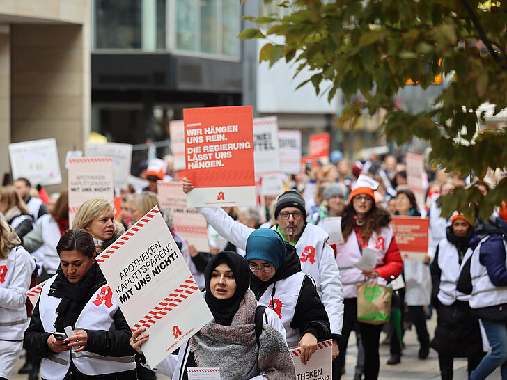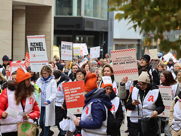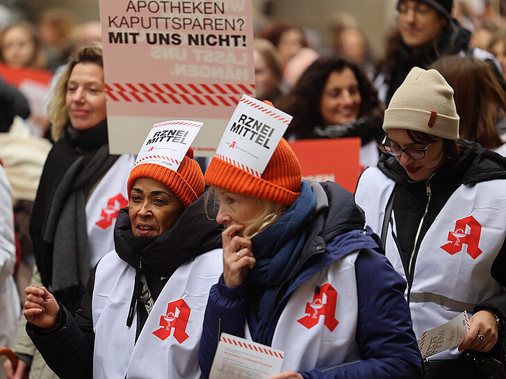Mit ihren neuen Protesten im November 2023 hat die Apothekerschaft die Bundesregierung noch entschlossener aufgefordert, die ambulanten Strukturen in der Gesundheitspolitik zu stärken, die Apotheken solide zu finanzieren, statt – wie durch das Bundesgesundheitsministerium vorgeschlagen – bewährte Strukturen in Frage zu stellen. Denn: Anstatt die Apotheken wirtschaftlich zu entlasten und das System so zu stabilisieren, hat das von Karl Lauterbach geleitete Ministerium zuletzt Eckpunkte zu einer zerstörerischen Apothekenreform vorgeschlagen. Demnach könnte es schon bald Apotheken ohne Notdienste, Rezepturen und sogar ohne Apothekerinnen und Apotheker geben. Die Apothekerschaft will ihre Patientinnen und Patienten vor diesen politisch geplanten Leistungskürzungen schützen – auch dafür gehen die Apothekenteams im November auf die Straße.